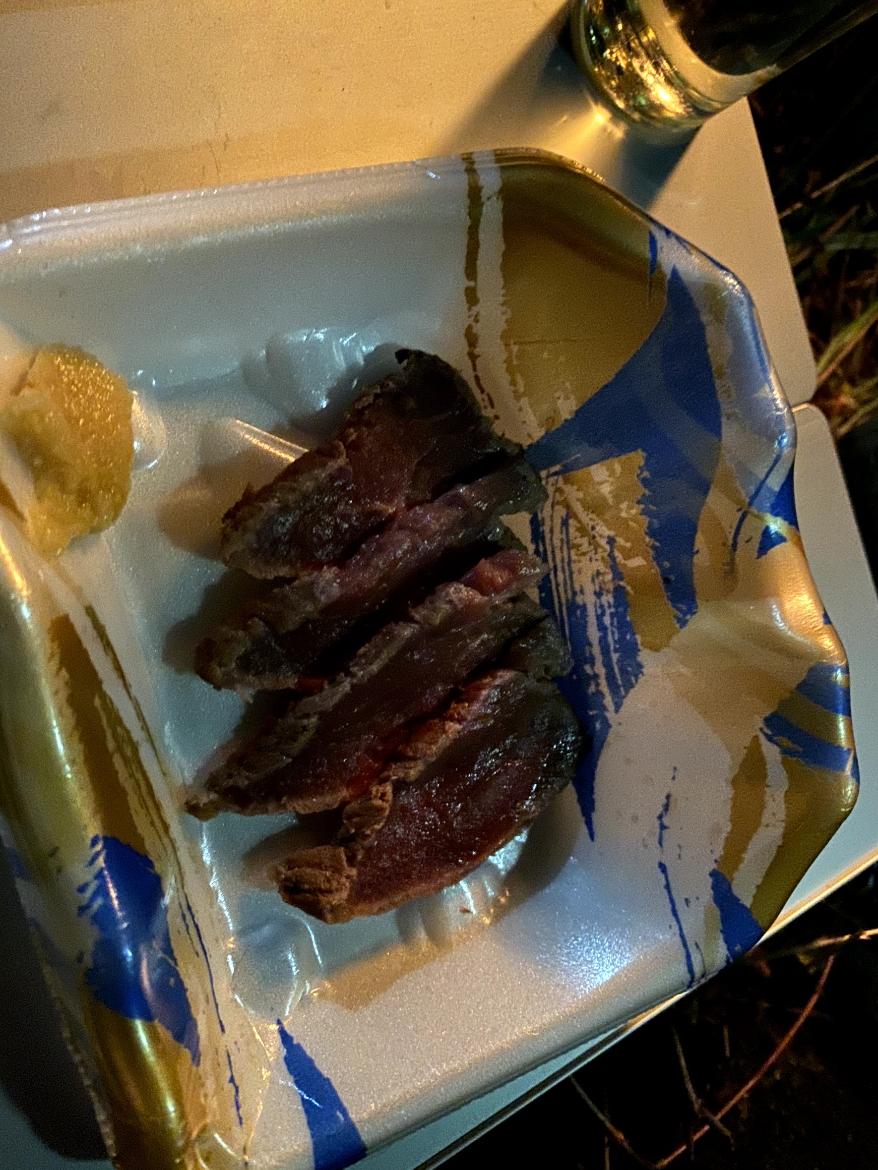 スーパーで肉を買ってレンタルの焚き火台で焚き火と焼肉をする
