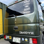 ソトアソビ Soto Asobi>ノリモノ>EVERY 軽箱バン EVERYステッカーチューン2021-06-11カッティングマシーンがあると いろんな事がしたくなる EVERYにステッカーをペタペタと貼って行ったら 何だか雑然としてごちゃごちゃな感じになってしまった 前はこんな風 特に色と形がバラバラで気に入らない・・ どうせならと最初に貼ったスッテカーを全て剥いで 新たにステッカーを貼り直した 今度は白で統一 サイズもパソコンでレイアウト、 シミュレーションしながら決めた 一番のお気に入りはダイワロゴをアレンジした オリジナルのDA17Vロゴ フロント 良い感じ!! 運転席側 リア 運転席のリア側 助手席のリア側 助手席側 フロント EVERY 軽箱バン, カスタマイズPosted by dz-inc