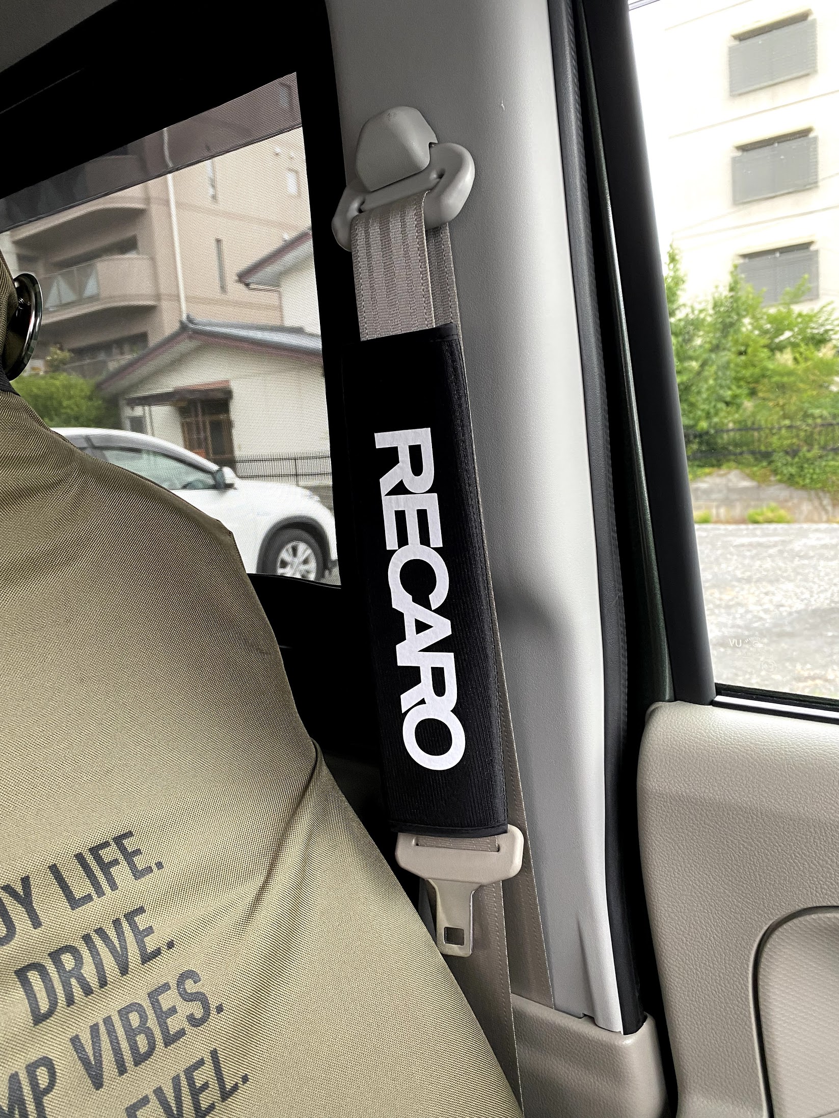 シートベルトのパッドを作った 100均のものにレカロのロゴをカッティングマシンで ...